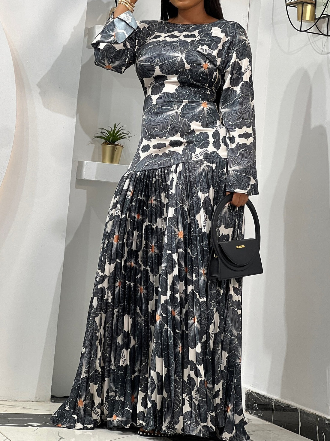 Turtleneck Pleated Patchwork Fitted Maxi Dress