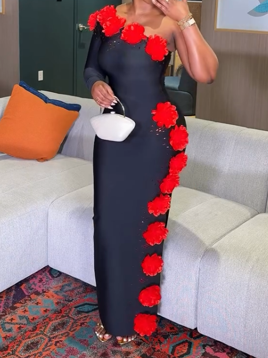 Deep-V Flowers Diamond Backless Bandage Maxi Dress