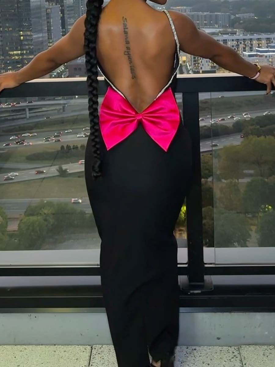 Rhinestone Sparkle Sexy Back Bow Sling Dress