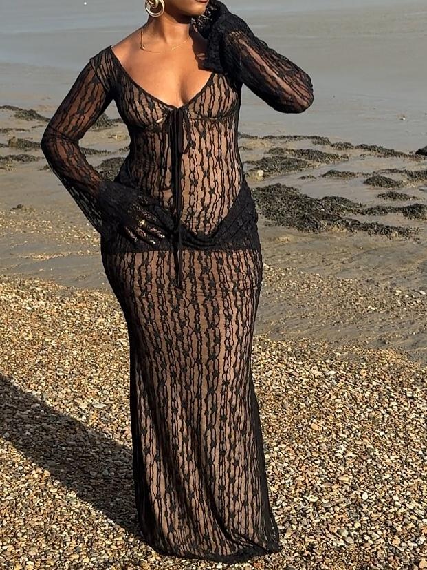 Lace Cup Detail Long Sleeve Maxi Dress