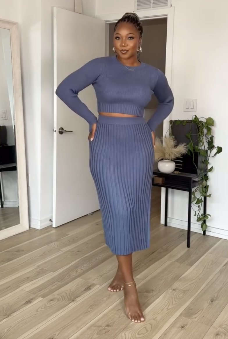 Sweater Outfits Set Long Sleeve Crop Top Ribbed Split Bodycon Midi Long Skirt Knit Dresses