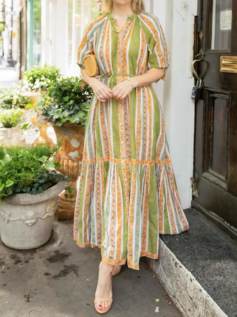 Vintage Lantern Sleeve Single-breasted Floral Dress