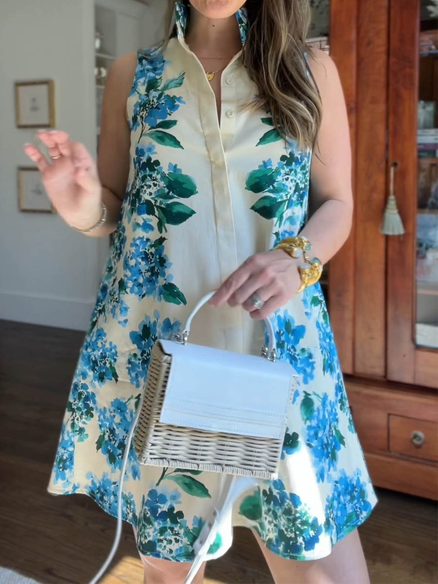 Deep V Neck Button-Front Printed Dress