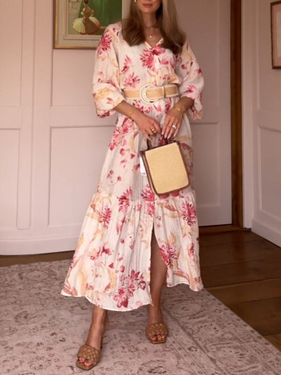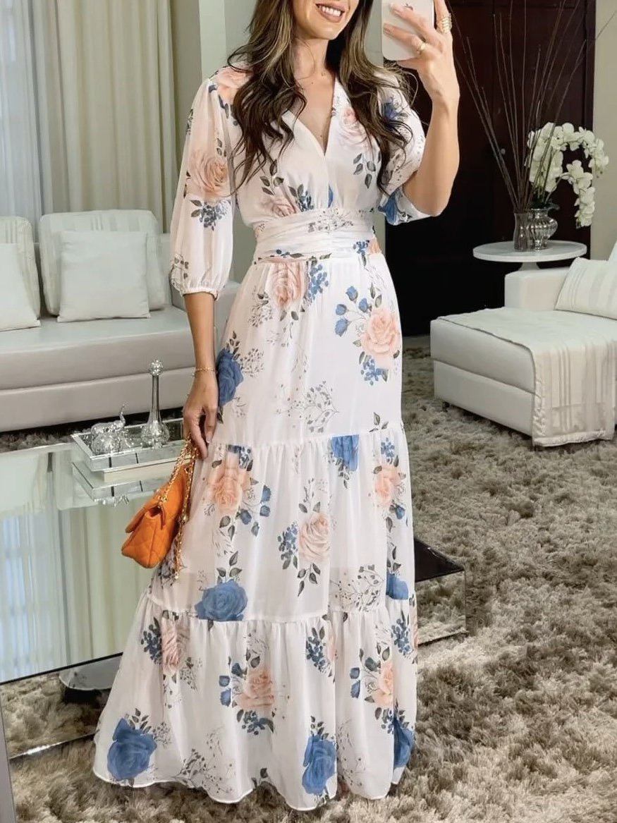 Puff Sleeve Printed Loose Maxi Dress