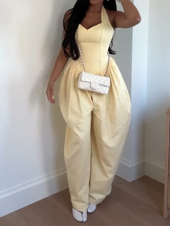 Halter Neck Blackless Knitted Jumpsuit