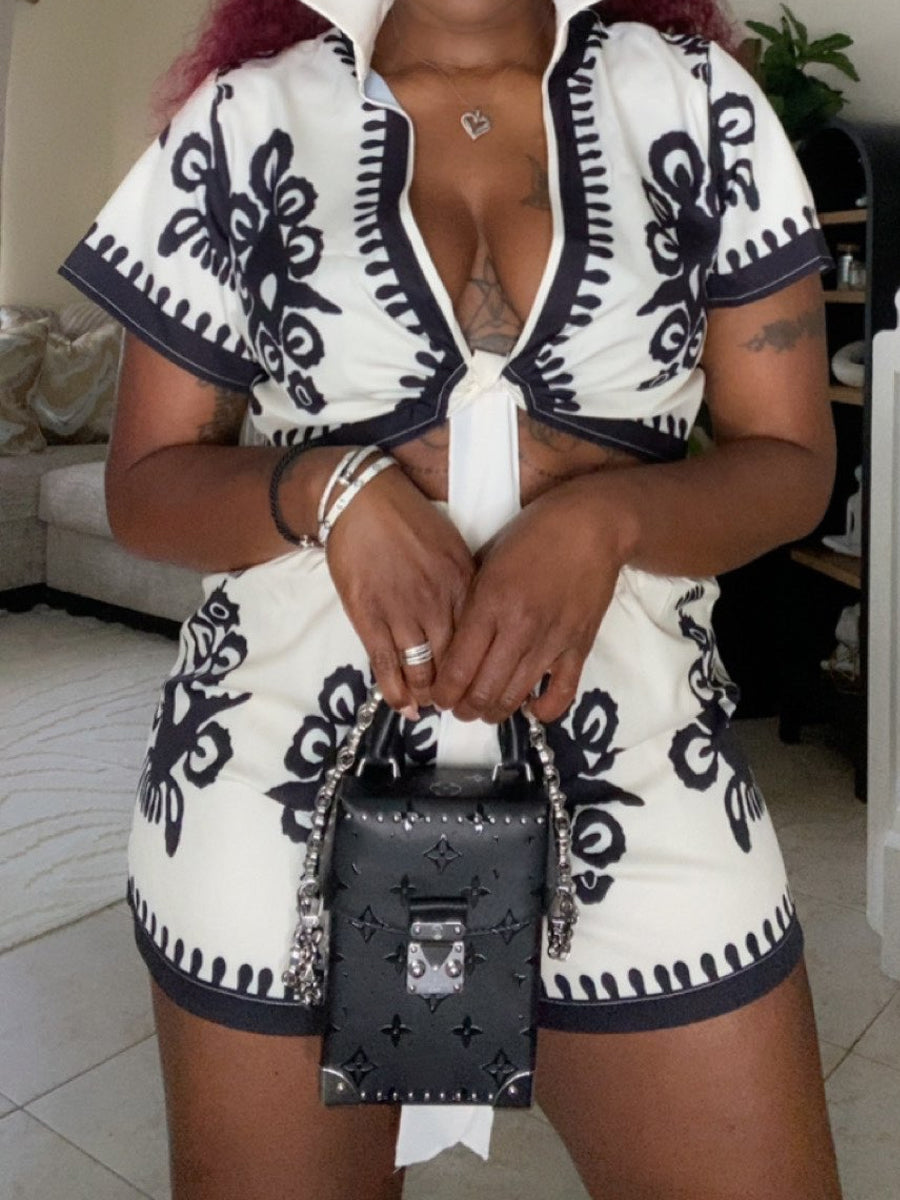 Fashion Placement Print Two Piecs Set