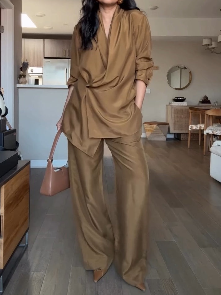 Crop Top and Pleated Pants 2-piece set