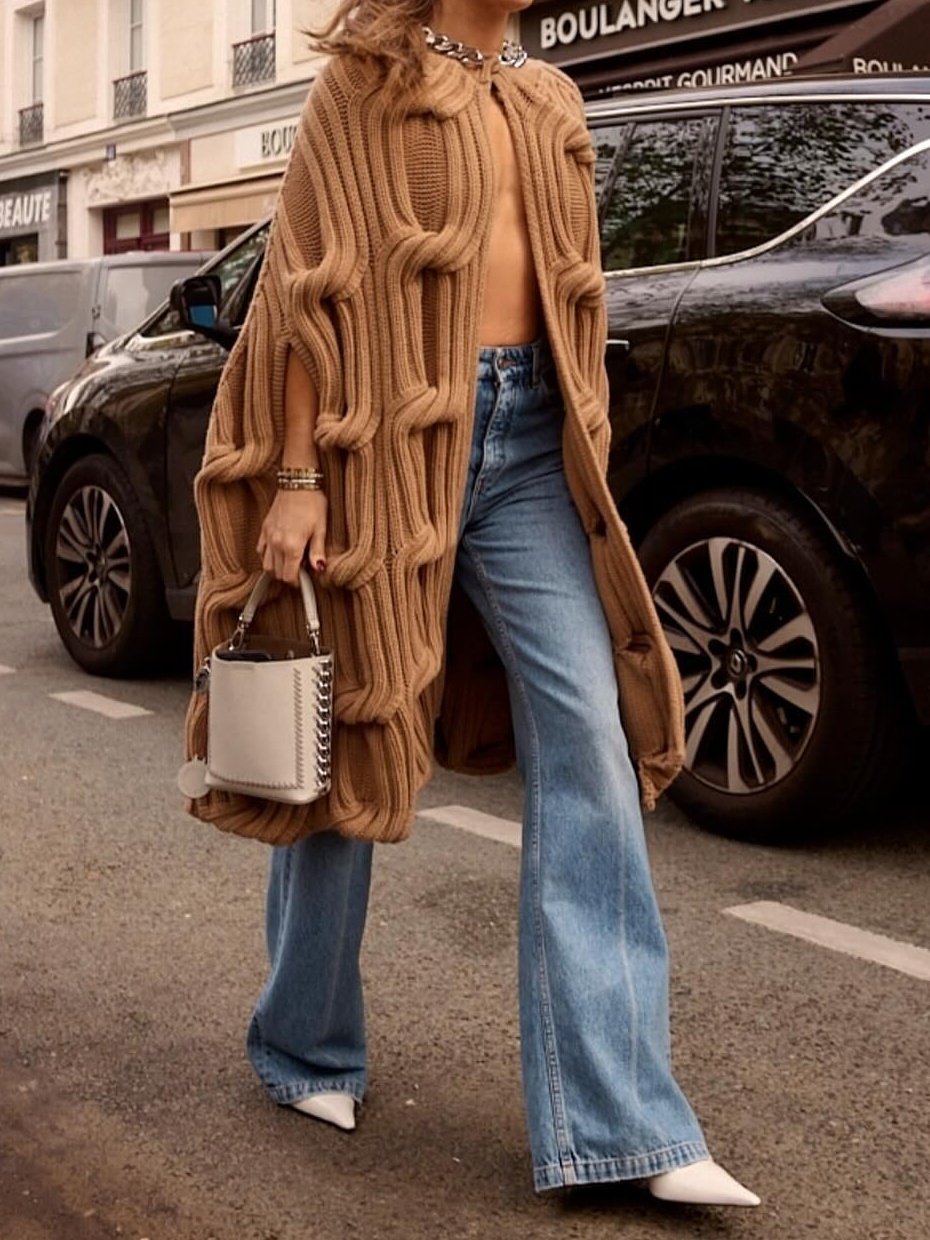 Fashion Trumpet Sleeve Round Neck Slit Loose Knitted Suit