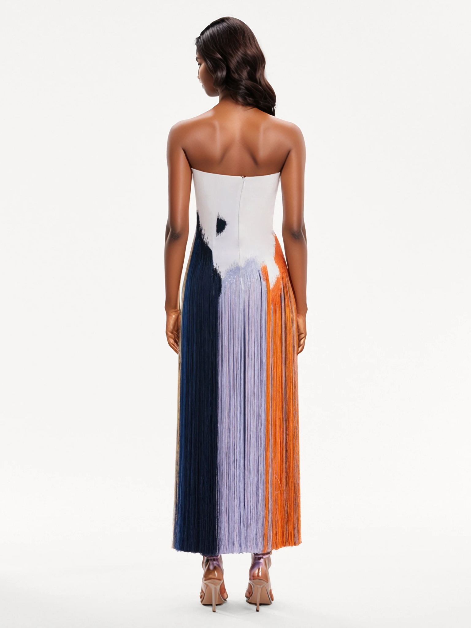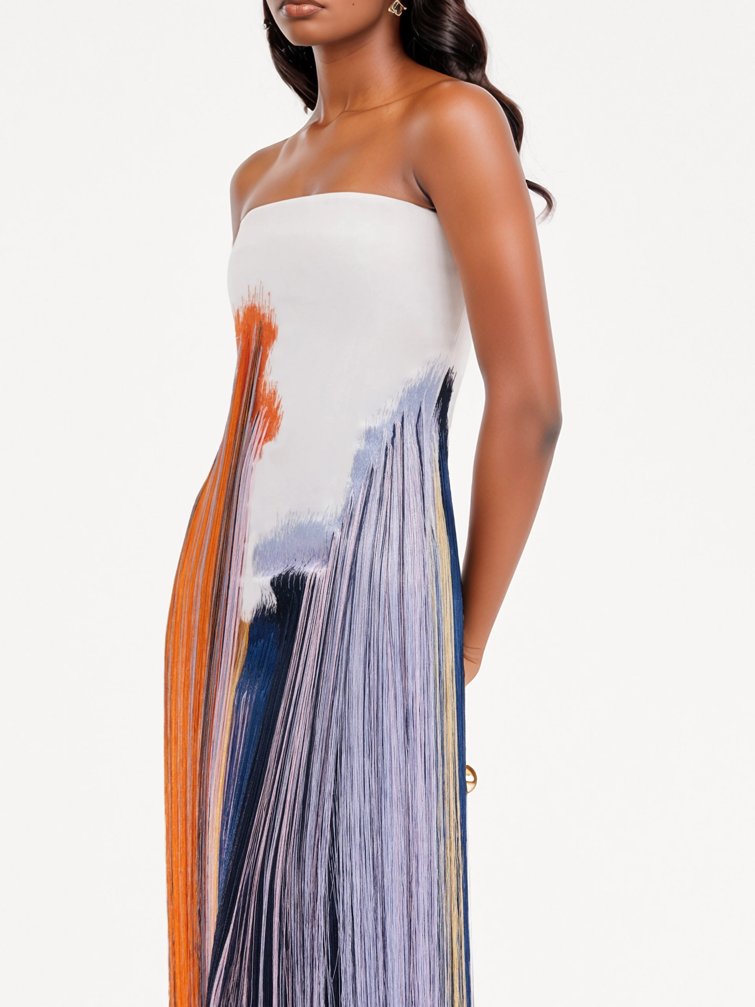 Abstract Brushstroke Fringe Cocktail Dress