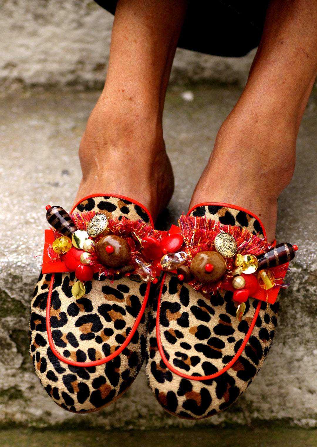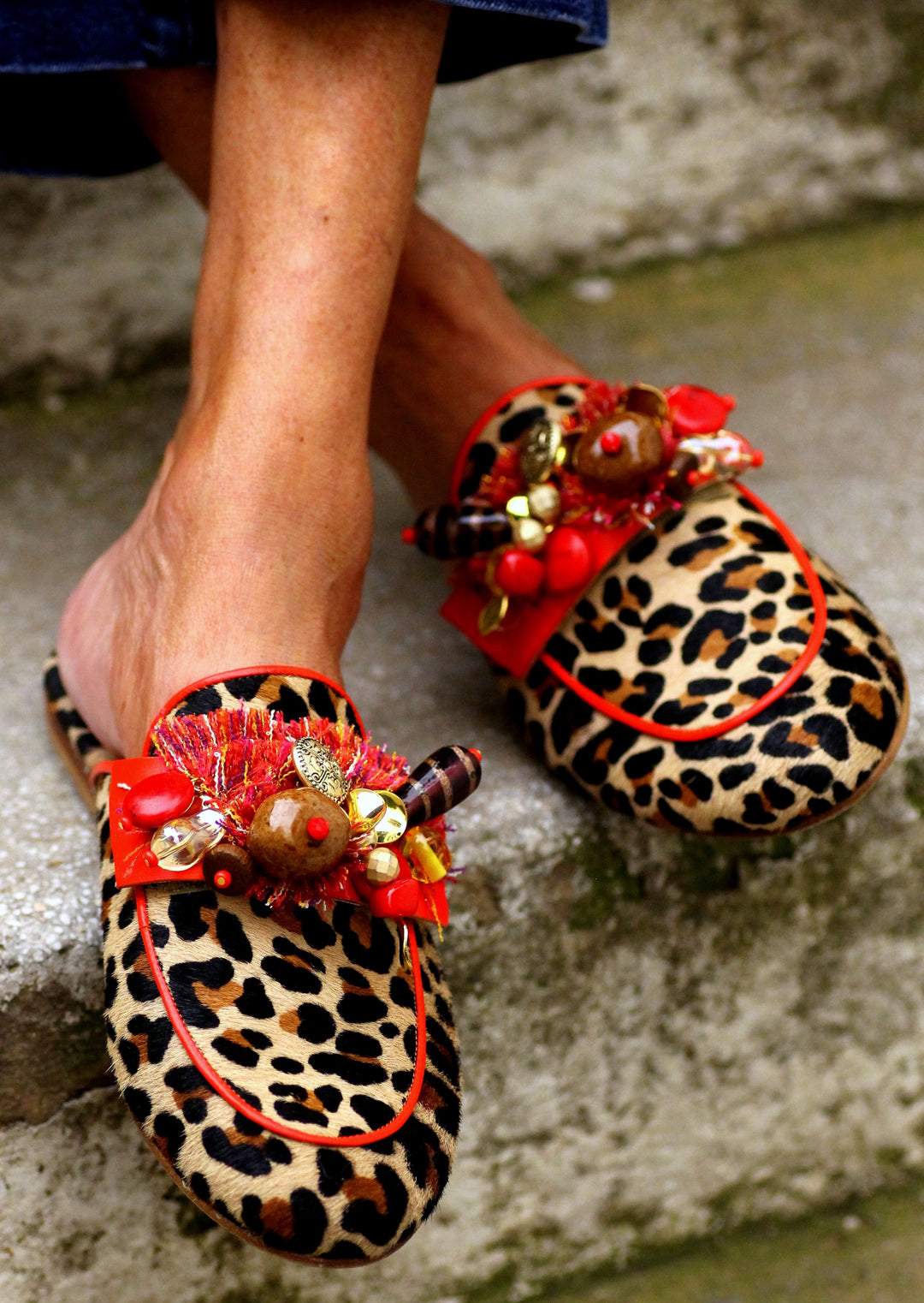 The Aline loafers in leopard are lined with luxurious cowhide leather, with red details providing a sophisticated look, while the cushioned footbed ensures all-day comfort.