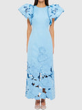 Appliques Puff Sleeve Maxi Dress