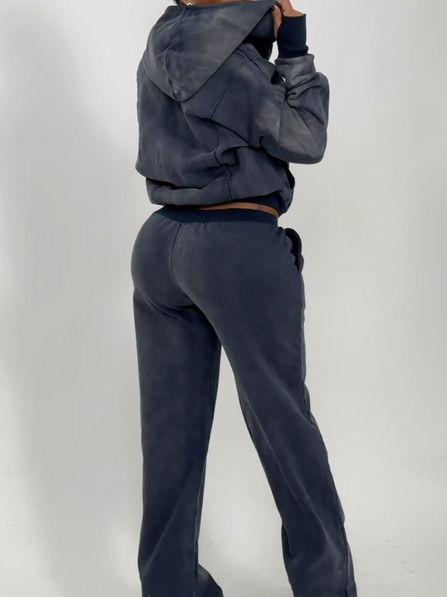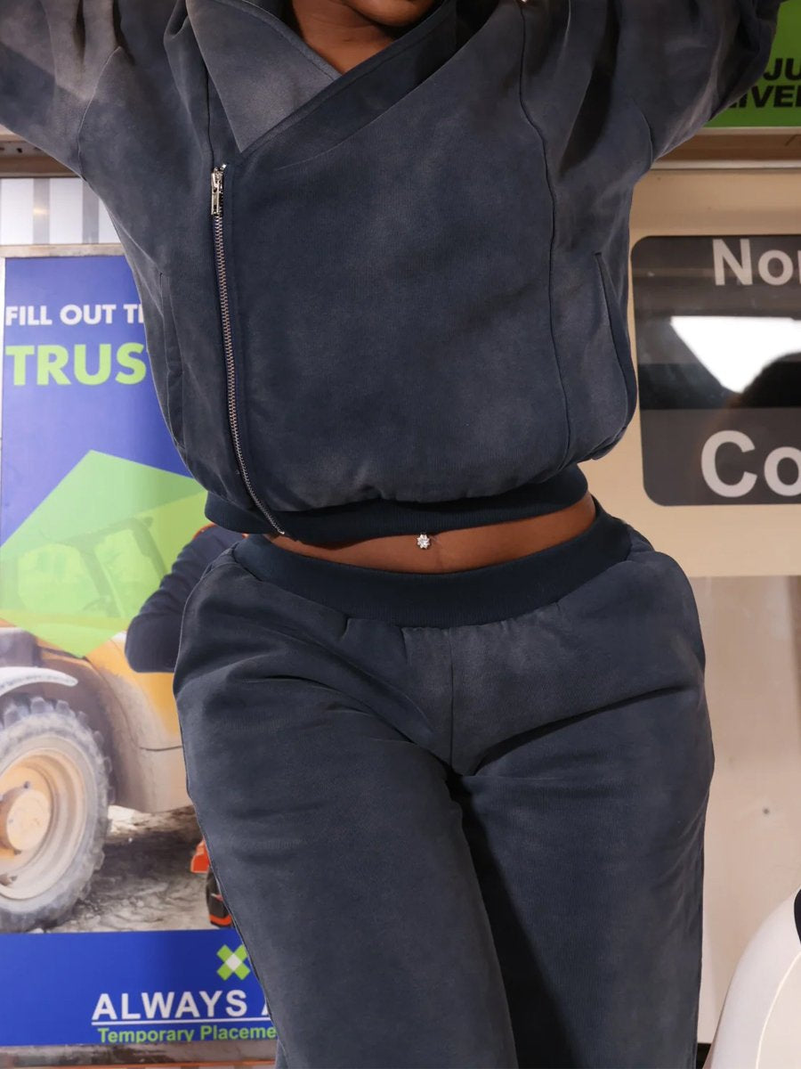 Asymmetrical Hooded Zip Up Two Pieces Set