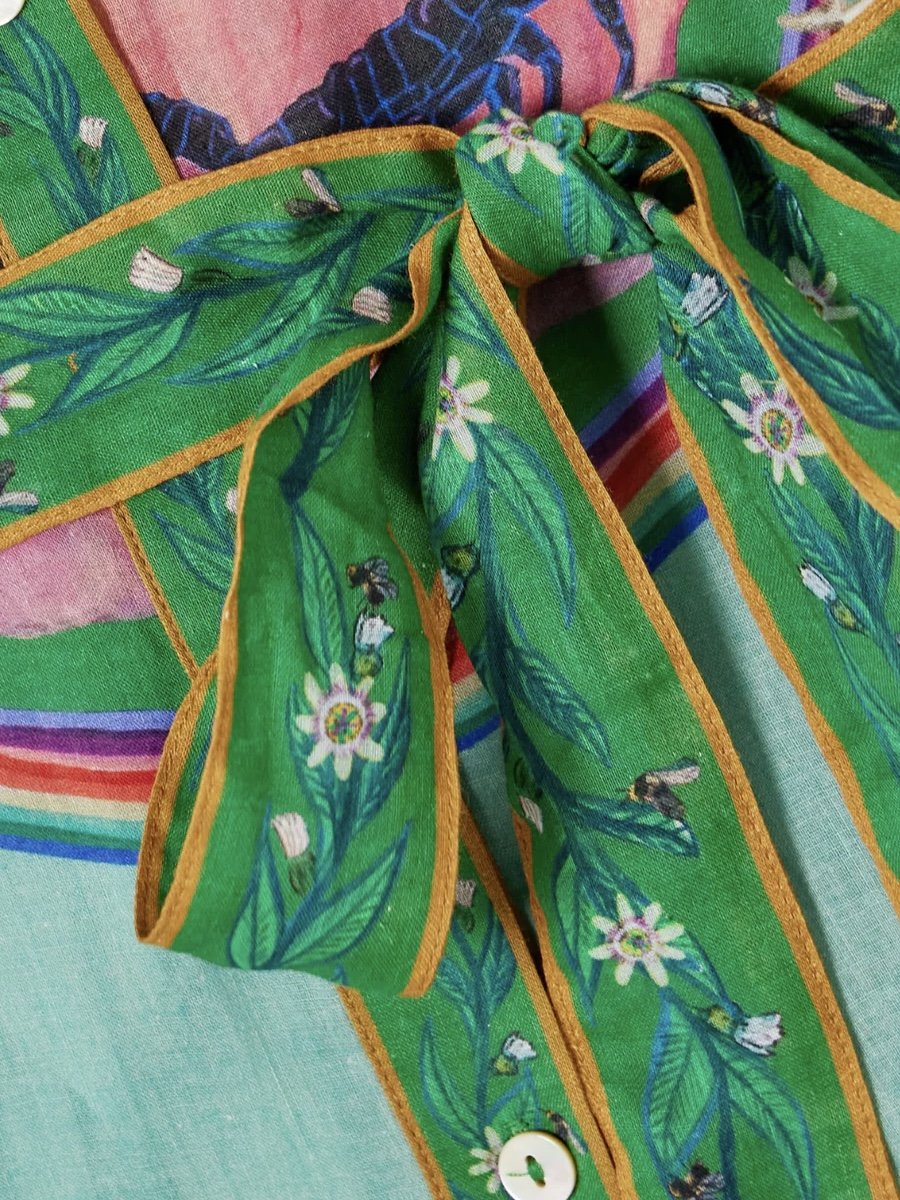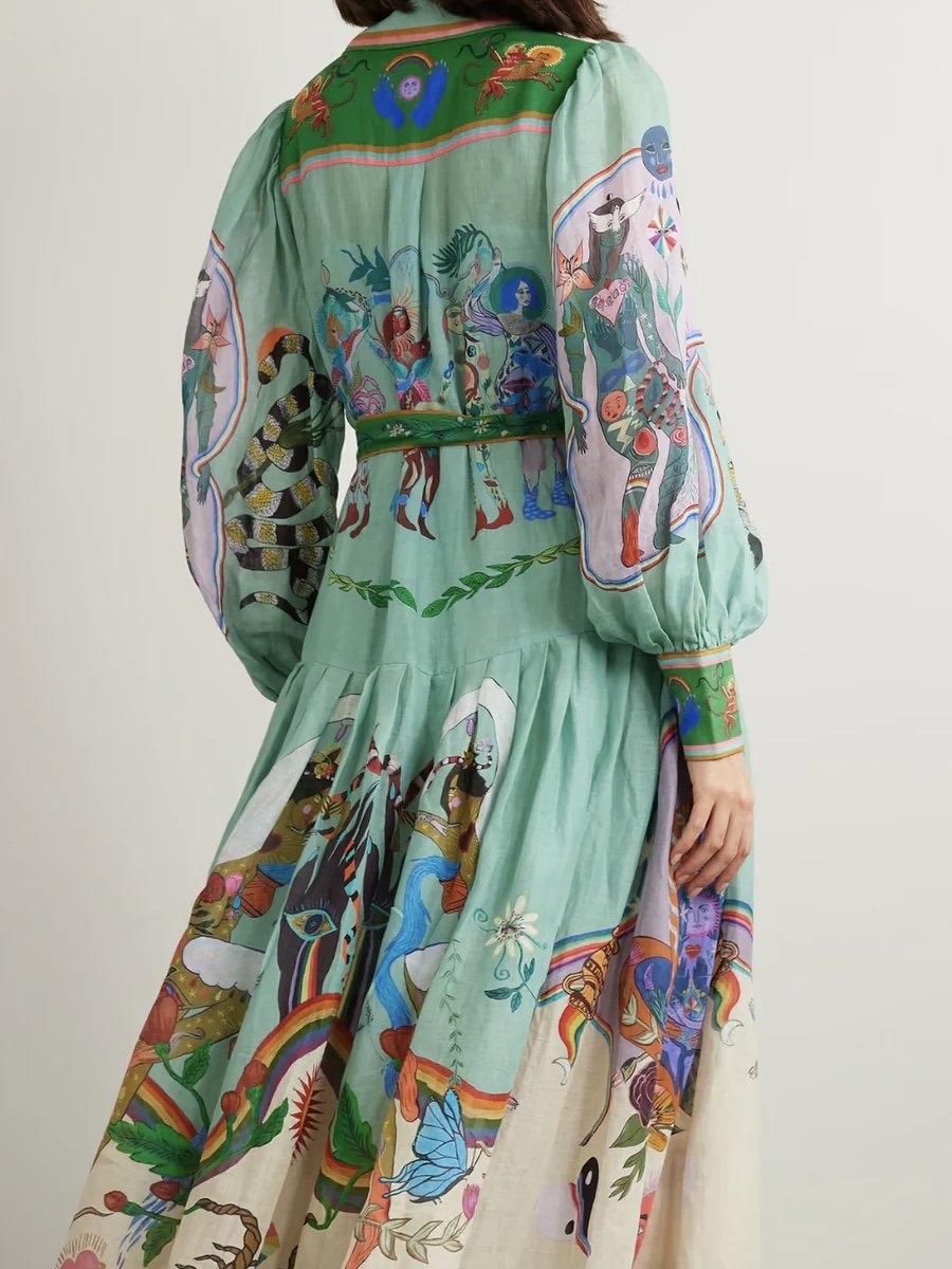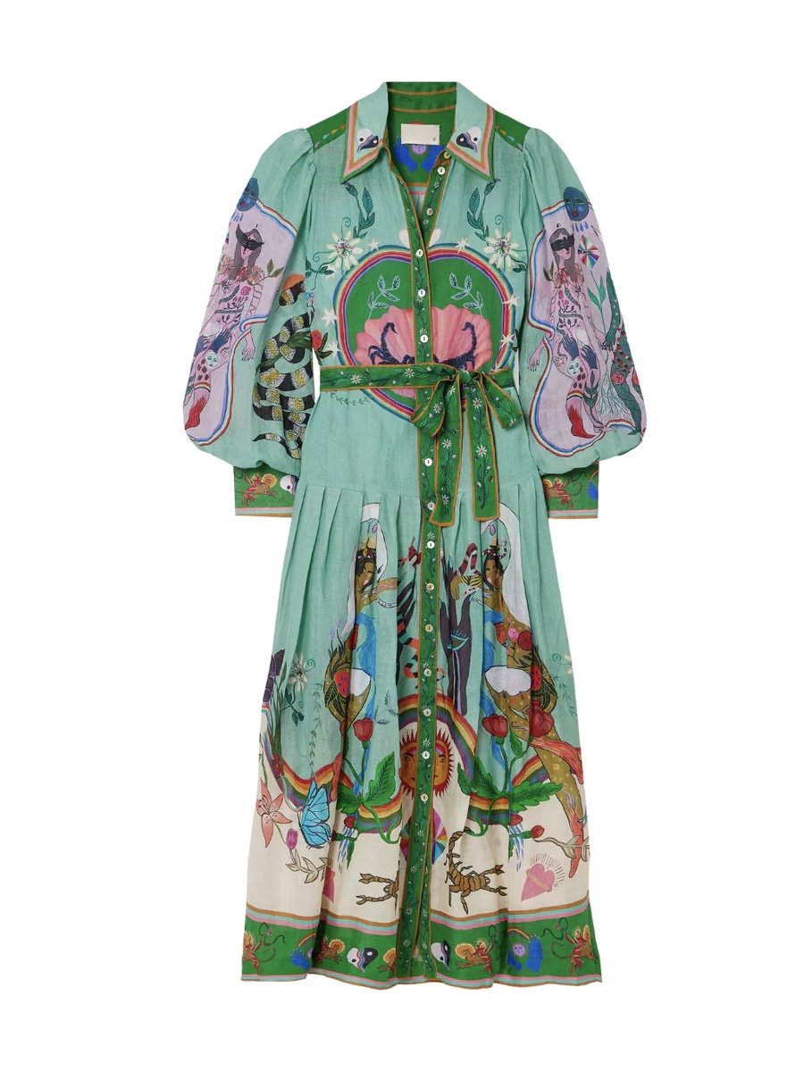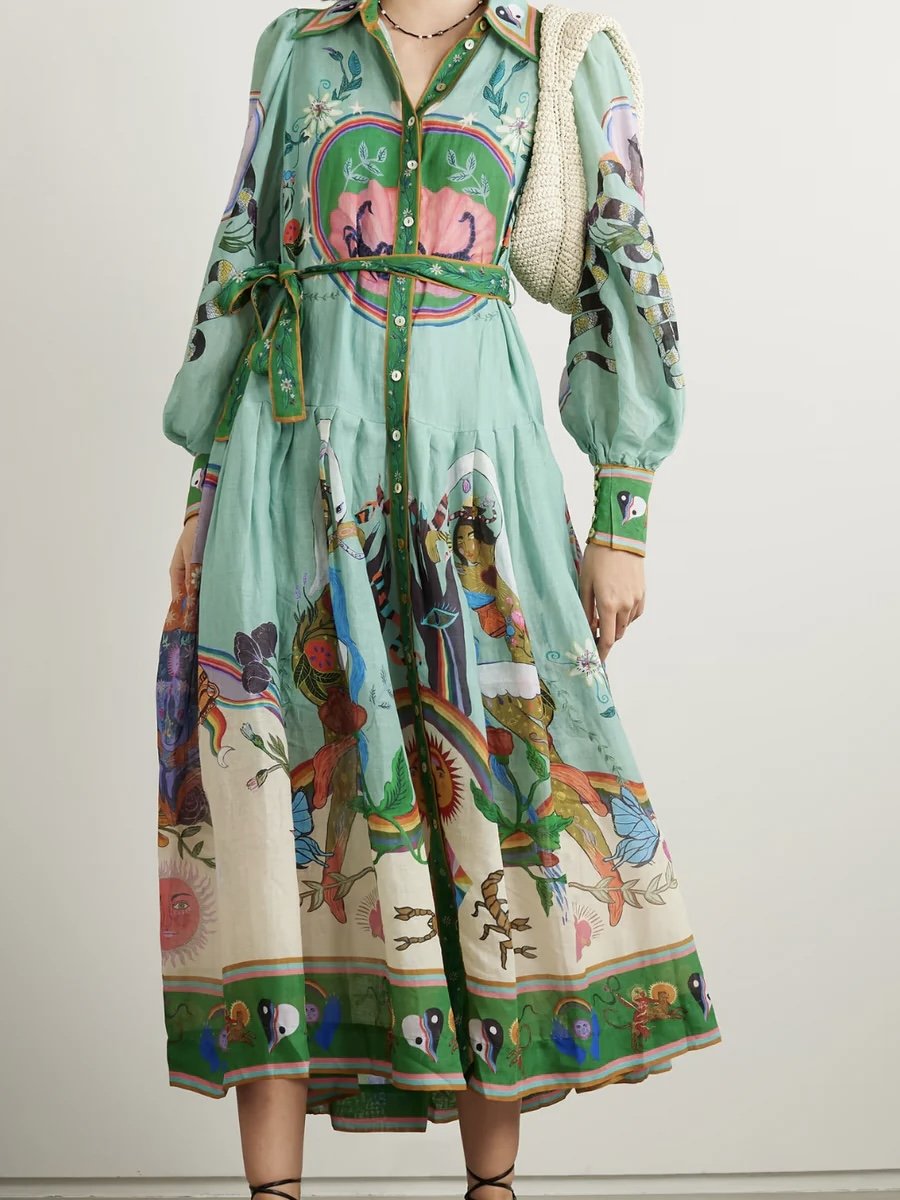 Made with ramie fabric, it offers a lightweight and breathable option for warmer weather. With a flattering belted waist and chic print, this dress is perfect for any occasion and will make you stand out in the best way.