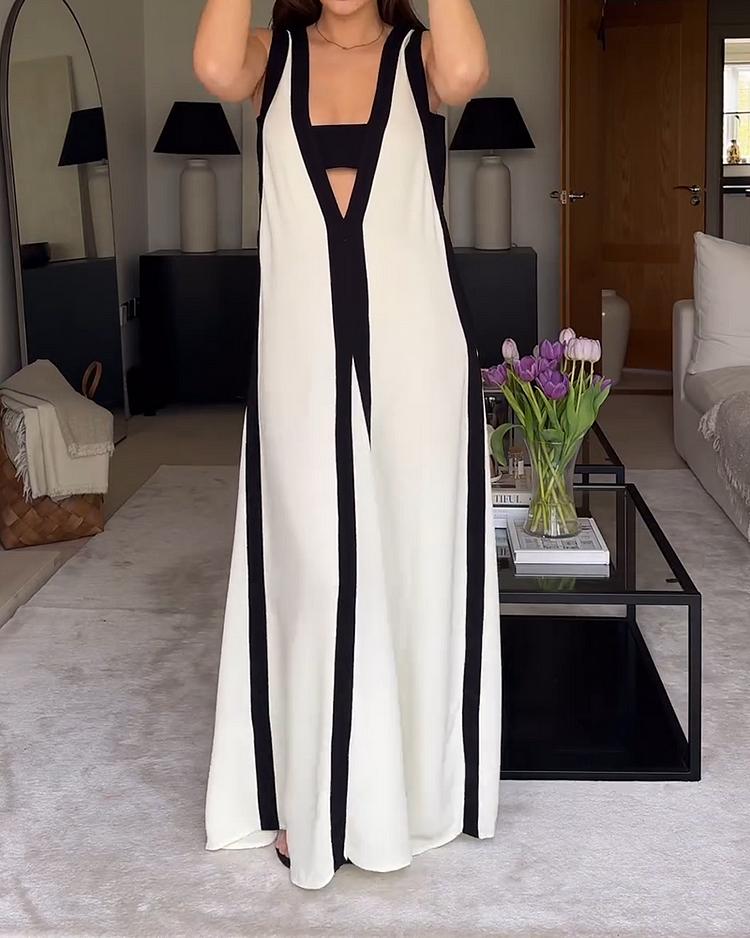 In an easy to wear A-line shape, this floor-length dress from Reiss is made from whisper-weight viscose. Effortlessly flattering thanks to a fuss-free v-neckline, this sleeveless style sports distinctive block stripes through its profile.