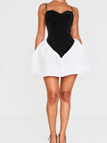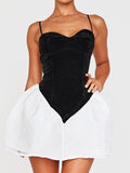 Black Velvet Dipped Waist Detail Lace Hem Mini Dress