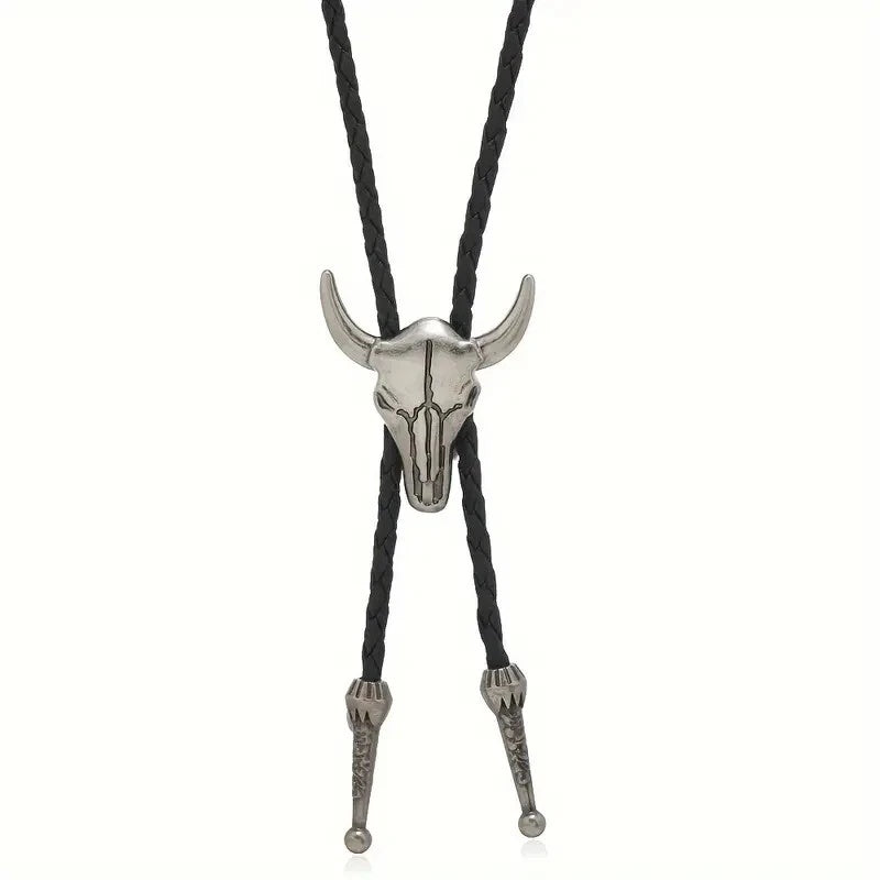 This unique piece of jewelry is perfect for those who love Western and Retro themes. The black color of the necklace highlights the intricate design of the Big Bull Head Bolo pendant. This Bolo Tie is made for men's jewelry and is the perfect accessory for any shirt or collar. Crafted with high-quality materials, this Bolo Tie is designed to last. It will make a great addition to any collection and is sure to turn heads. Wear it to a party, to work, or just as a statement piece.