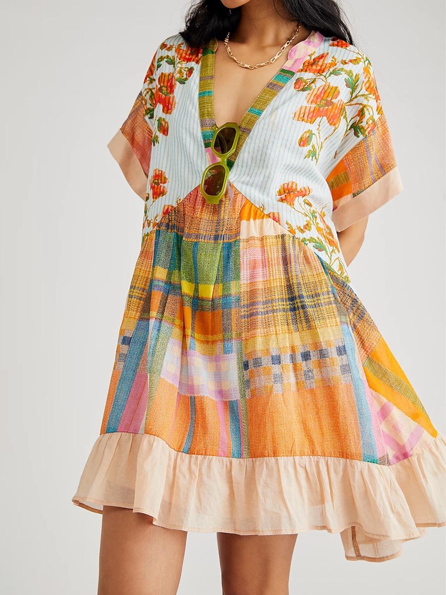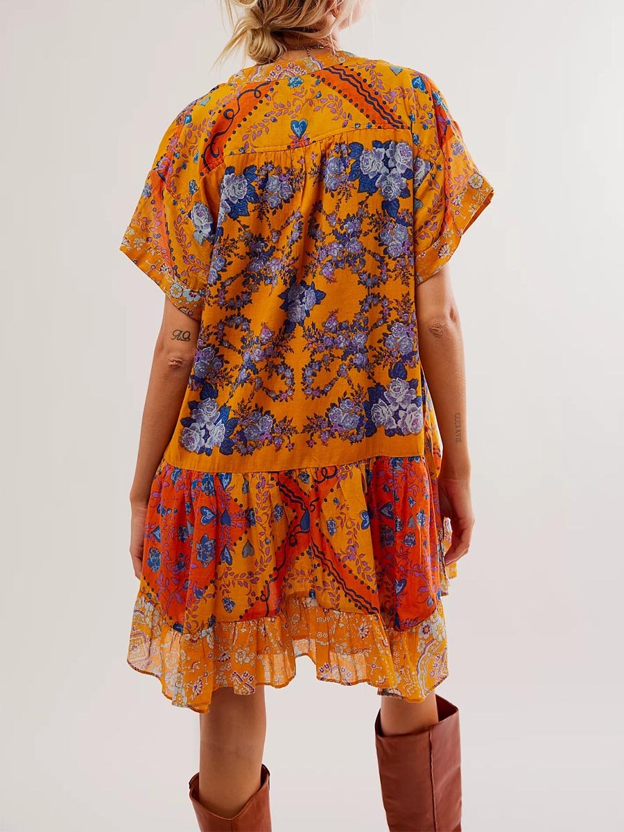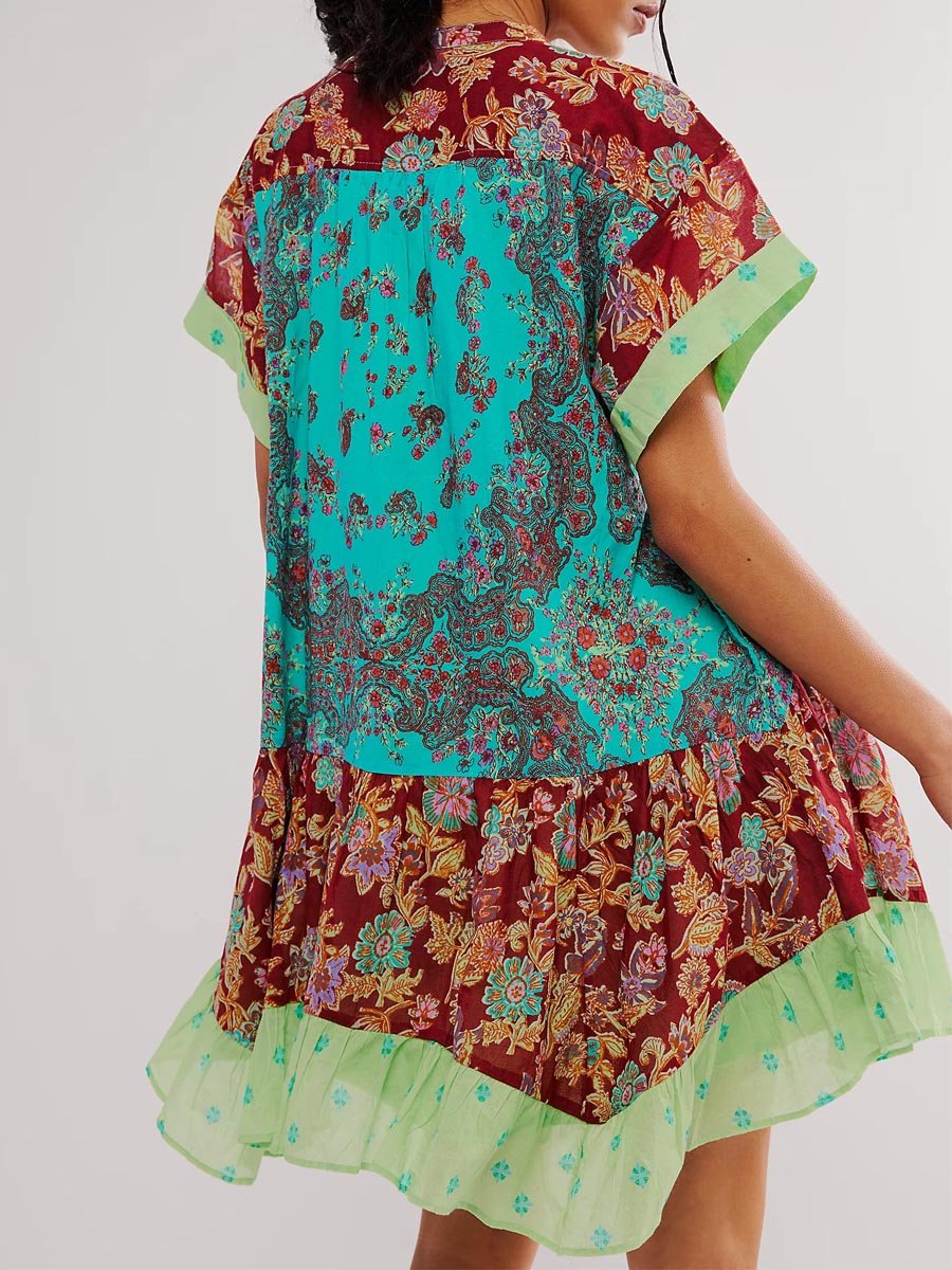 Bohemian Printed Short Sleeve Pocket V Neck Dress