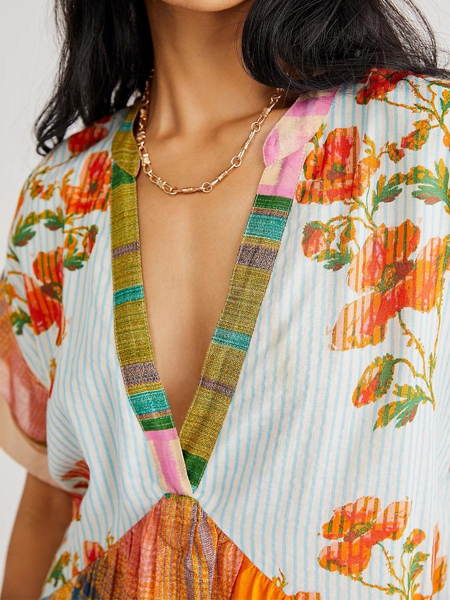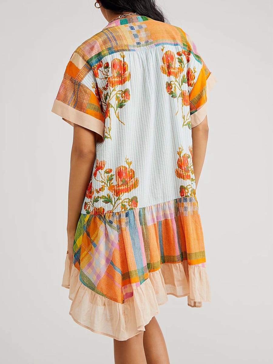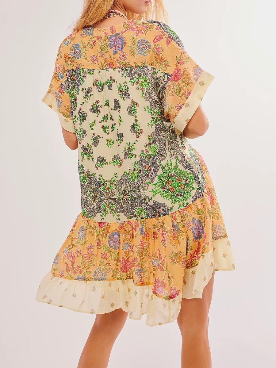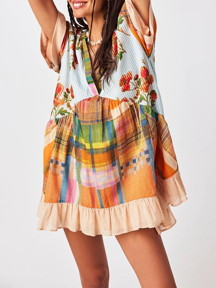 Bohemian Printed Short Sleeve Pocket V Neck Dress