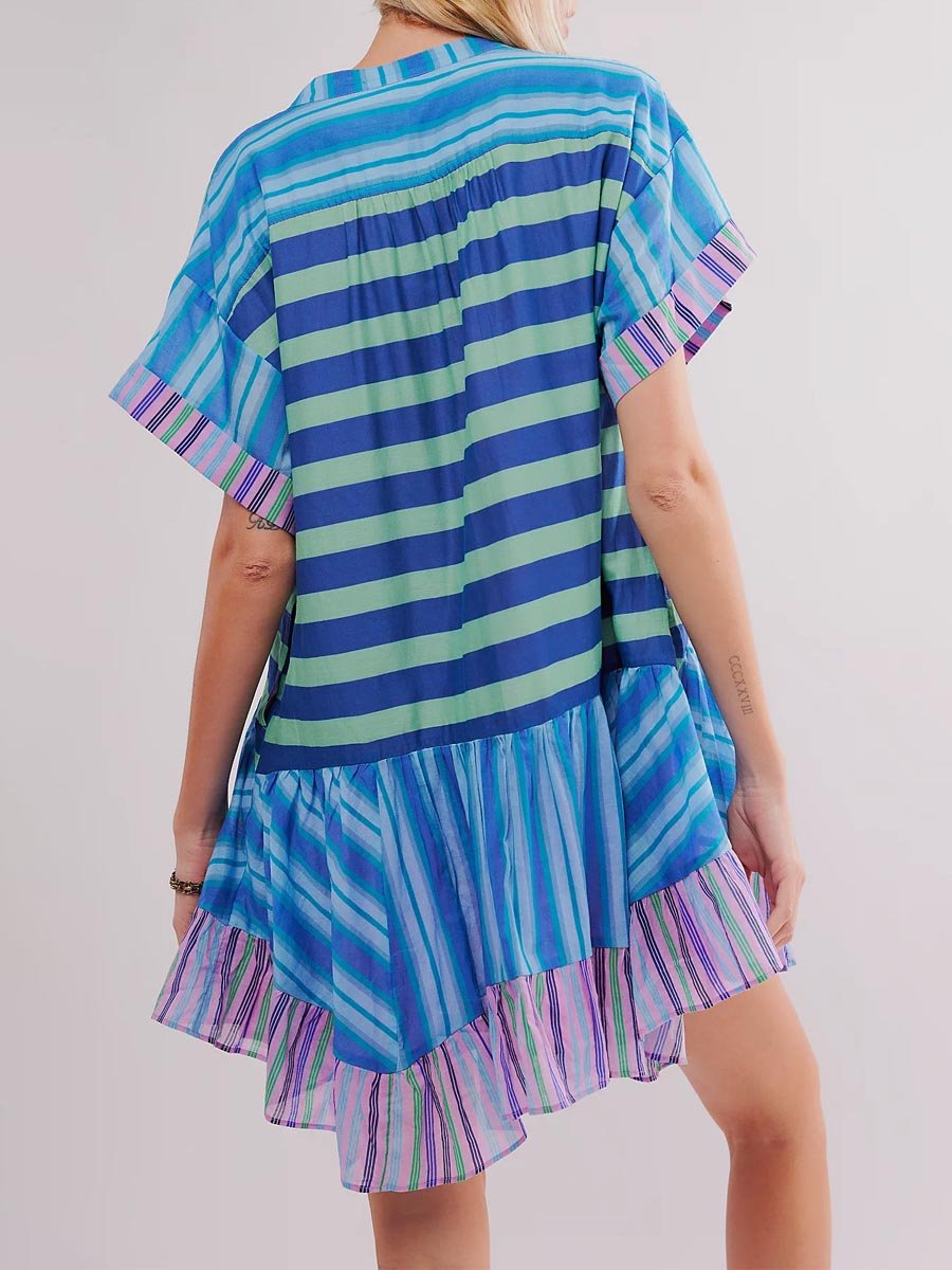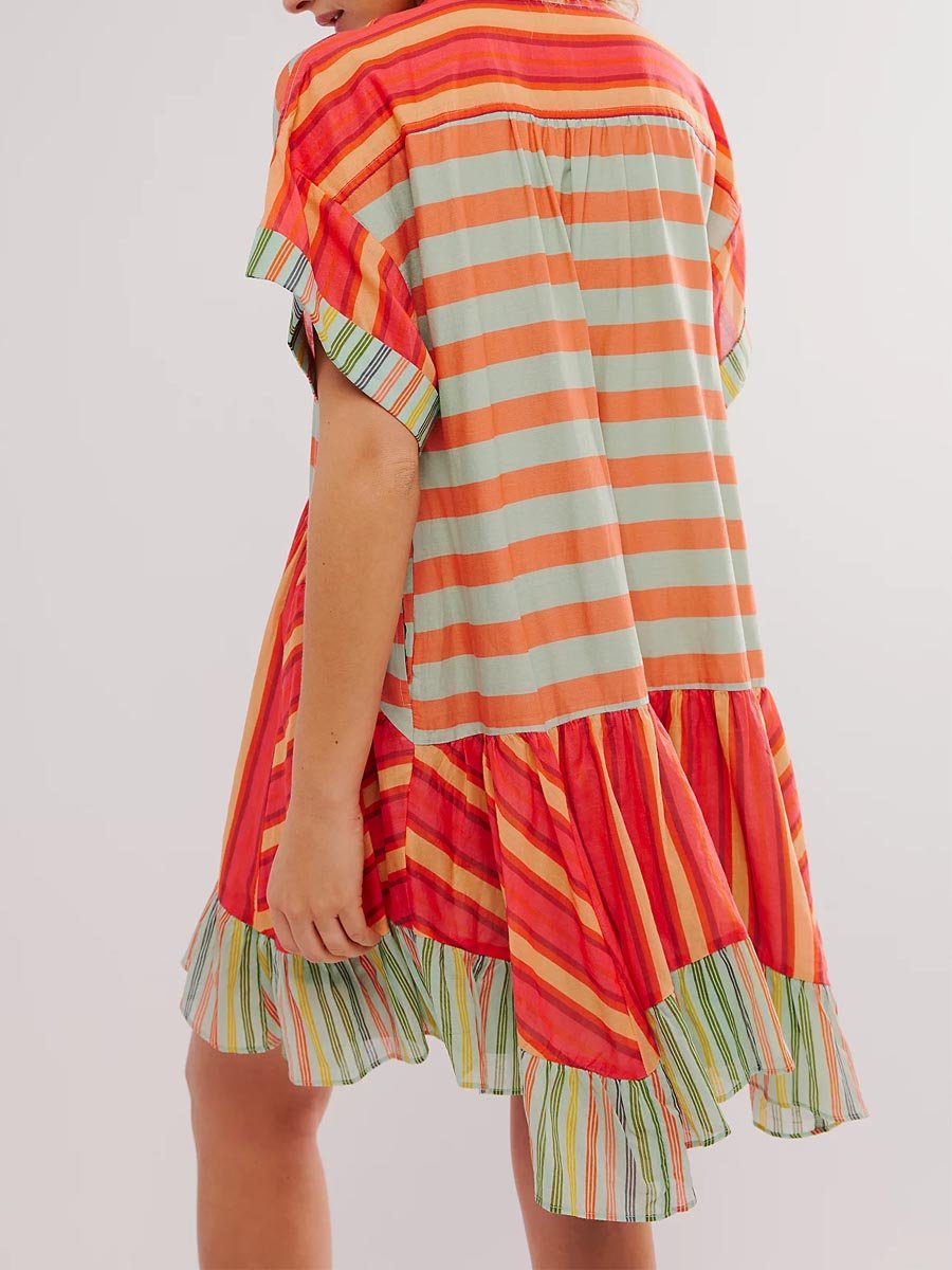 Printed to perfection, this forever essential mini dress is featured in a drapey, flowy fit with dolman sleeves and ruffled bottom hem for added dimension.