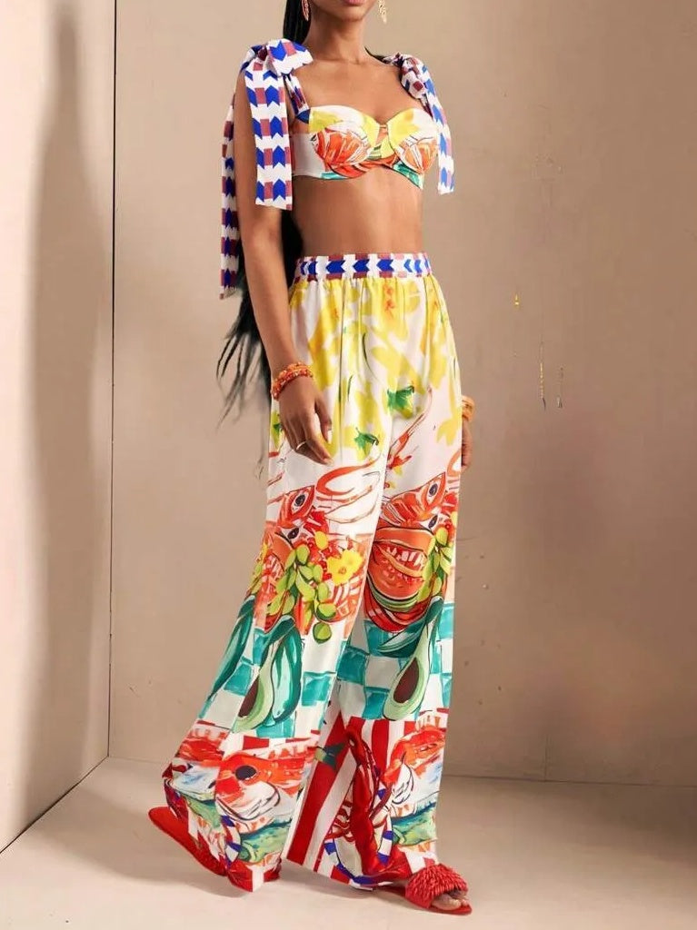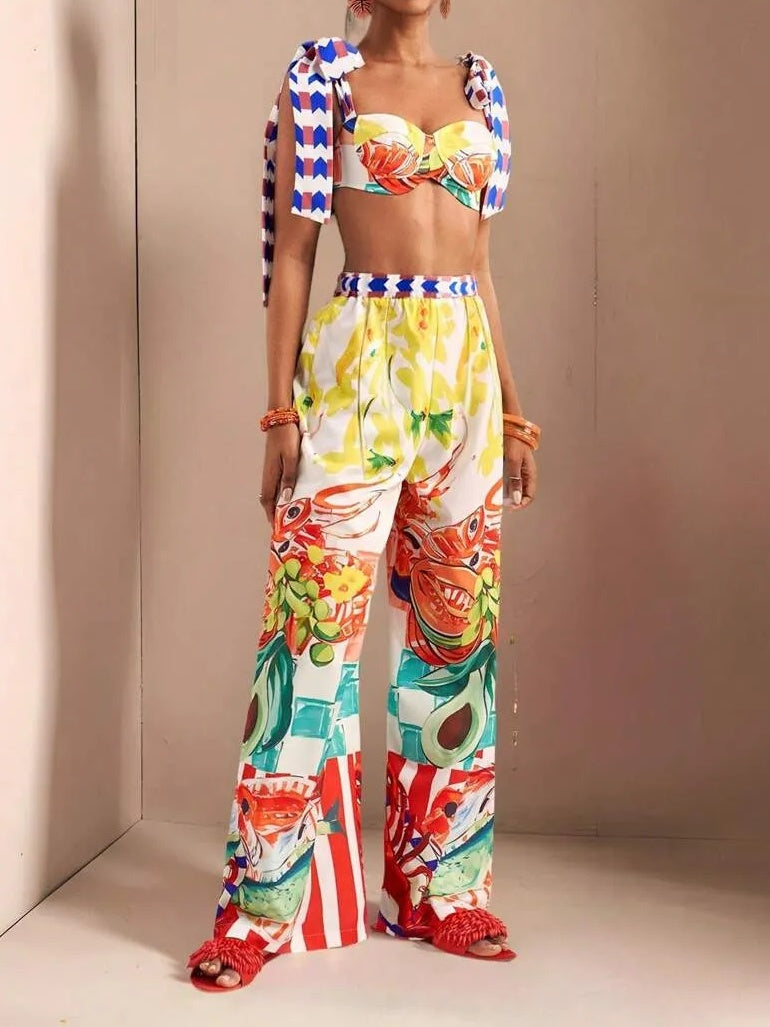 Bowknot Shoulder Straps Chest-Wrapped Heart Top Wide-Leg Super Trousers