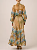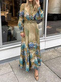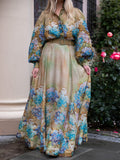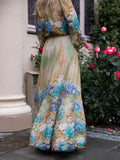 Button Up Printed Long Sleeve Belted Dress