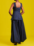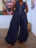Casual Blue Pocket Pull-On Waist Denim Two Piece Pant Sets