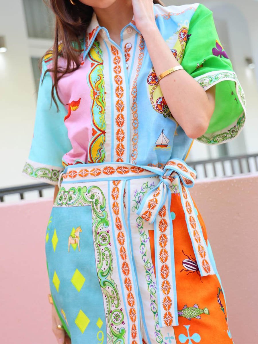 Get ready to turn heads in the Casual Fashion Printed Shirt Dress. This playfully designed straight mini silhouette features a unique point collar with stand and dropped shoulders, adding a touch of playfulness to your look. The concealed placket with shell buttons and in-seam pockets elevate the functionality of this dress.