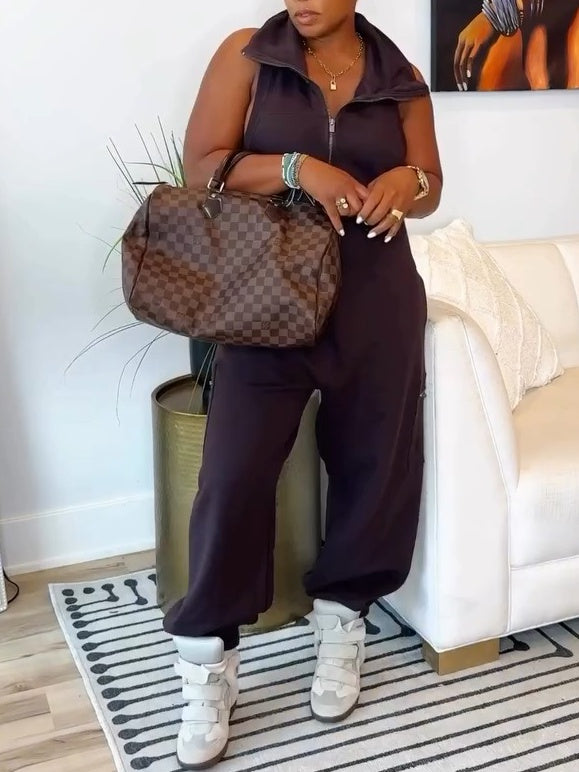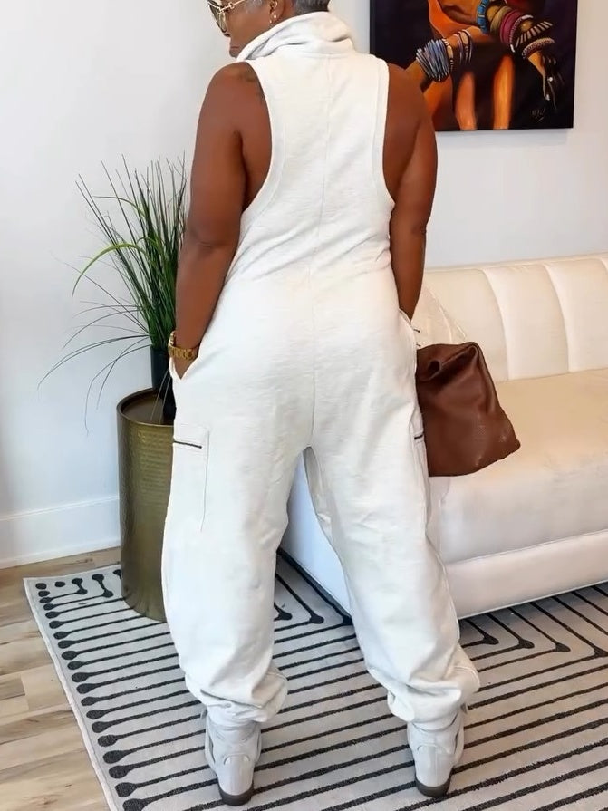 - Features: Comfortable cotton fabrication; zip-front closure; 2-ply high collar; slip pockets at hip; patch pockets at legs; ribbed cuffs; thick racerback.