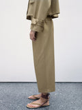 Design: This chic set features a tailored top with a stylish metro collar and matching capri pants, offering a polished yet relaxed look. The cropped pants and structured top make it perfect for modern, on-the-go style.