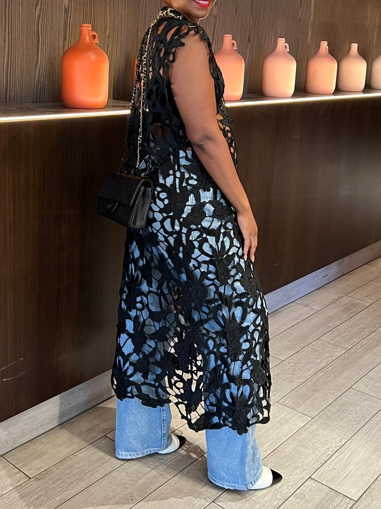 Effortlessly elevate your wardrobe with our Chic Overlay Lace Dress.