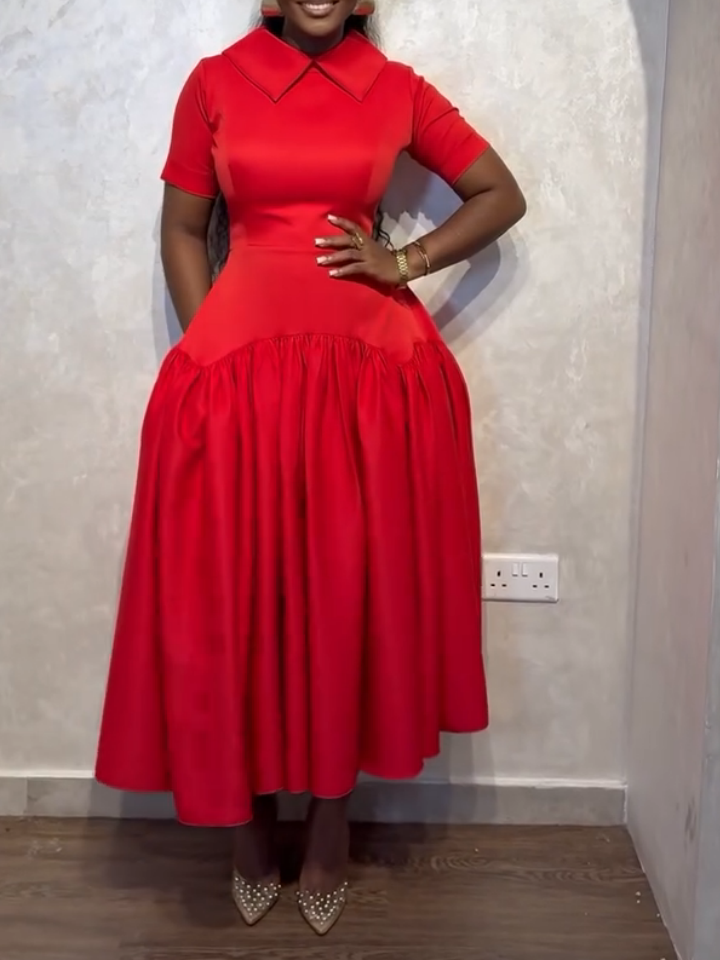 This Classic A-Line Red Midi Dress is the perfect blend of elegance and comfort. Featuring a flattering A-line silhouette, it cinches at the waist and gracefully flows down, creating a timeless and feminine look. The rich red color adds a bold pop, making it an ideal choice for both daytime and evening events. With a midi-length cut, it’s versatile enough to pair with heels for a polished look or flats for a more casual vibe. Whether you're attending a special event or enjoying a night out, this dress will make you feel effortlessly chic.