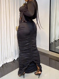 - Show off your shape this season in this plus black long sleeve extreme ruching midaxi dress. This unreal dress is brought to you in a black material with a long sleeve fit and an extreme ruching design that will have you feeling confident no matter what. You will be center of attention wherever you go. Team this unreal plus midaxi dress with gold hoops and a pair of heels to complete the look we are loving.