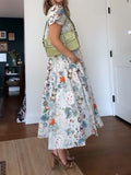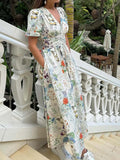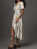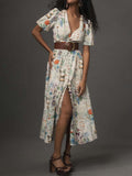 Deep V Neck Button-Front Printed Dress