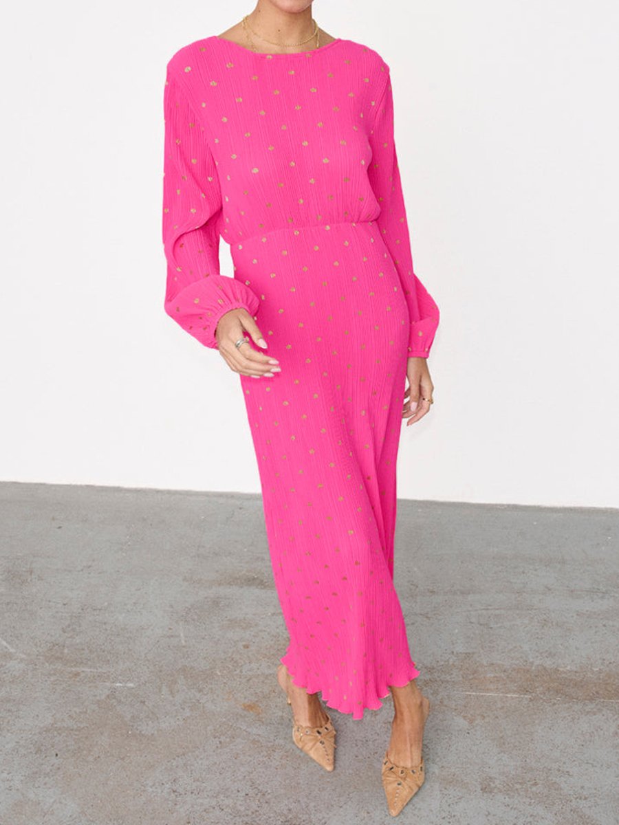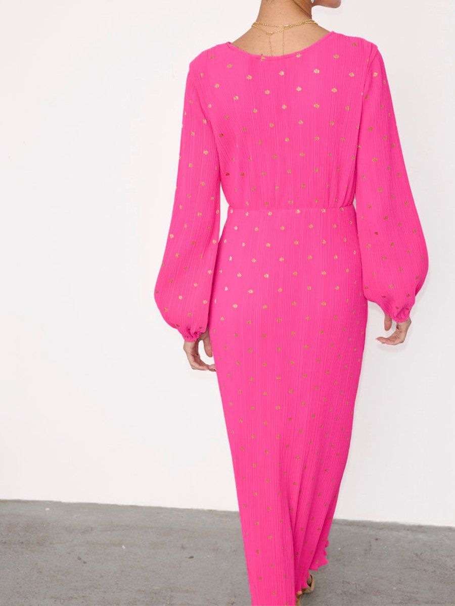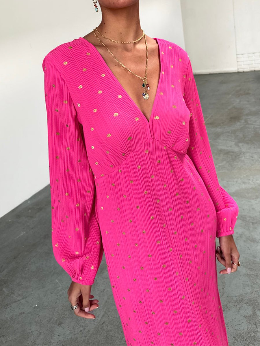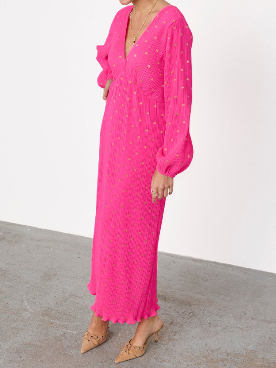 Deep V Neck Sexy Long Sleeve Plisse Dress