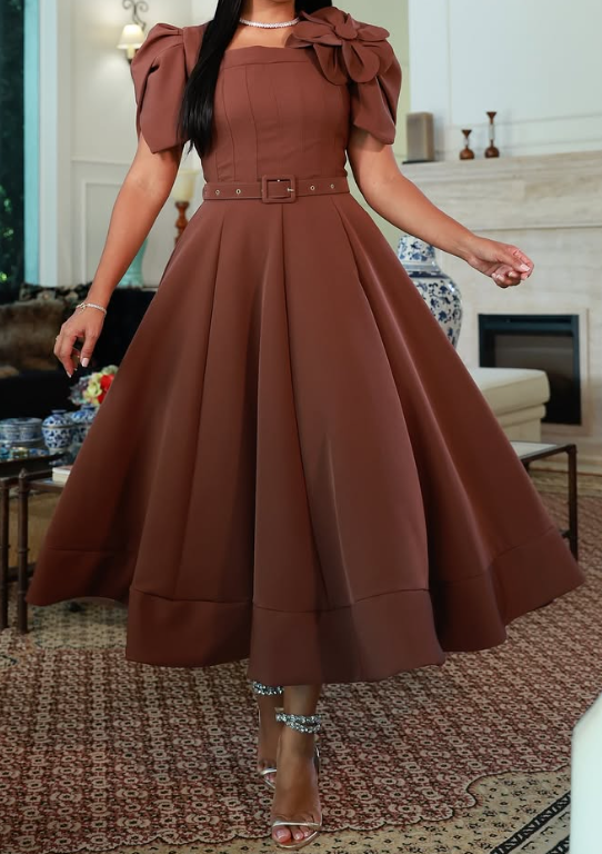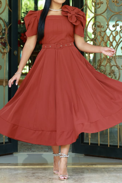 The Self-Portrait taffeta midi dress is an elegant statement piece, sure to make an impression at any soiree. This gorgeous midi dress is cut from rust brown taffeta, featuring a chic square neckline and puff sleeves. Fitted at the waist for a flattering silhouette.