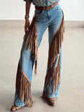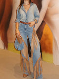 Denim Wide Leg Fringe Jeans