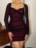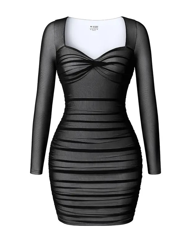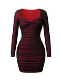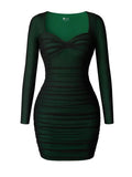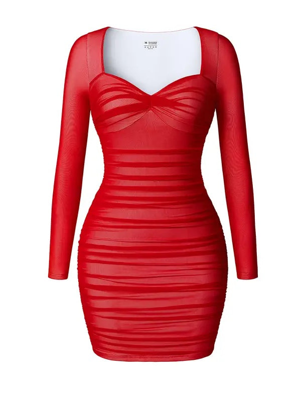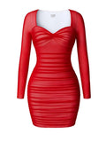 Elegant Design: This dress features a sweetheart neckline and long sleeves, perfect for a sweet yet sophisticated look. The bodycon fit accentuates your figure, making it ideal for parties. The ruched design adds a touch of charm and movement.