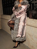 Elegant Color Block Belted Faux Fur Coat