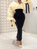 - Black / Elegant / Colorblock / Plain / Fitted / Cut Out / Split / Round Neck / Long Sleeve / Drop Shoulder / Regular Fit / Long / High Waist / Slit / Knitted Fabric / 90.0% Polyester / 10.0% Elastane / Machine wash or professional dry clean / High Stretch