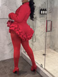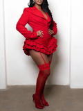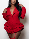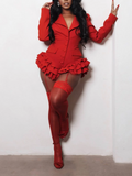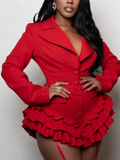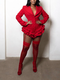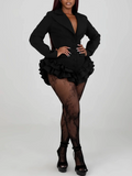 Make a statement at your next event, date night, or party with our ruffle romper. This playful but sexy piece combines power and femininity, featuring a tailored fit, sharp lapels, and a cascading ruffle hem. Perfect for the modern woman who values sophistication and edge, this statement piece ensures you stand out with confidence and style in any luxury setting.