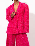 - The structured shoulder pads lend an air of refinement, ensuring a polished and empowered silhouette that commands attention.Adding a modern twist, the blazer is accentuated with piping detail on the hems. The precise piping not only contributes to the overall design but also introduces a crisp and elegant touch, highlighting the contours of the blazer with sophistication.This Purple Velvet Sequin Blazer is a versatile wardrobe essential, perfect for formal occasions, festive gatherings, or any event where you want to exude confidence and style. Pair it with the LIZA sequin pant set for a complete look.