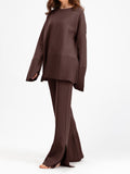 This soft 2-piece lounge set is made with delectable cashmere blend fabric. It is so comfy and warm that you can enjoy your days indoors curled up with a good book or even when doing your favorite activities.