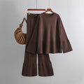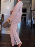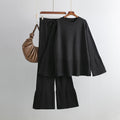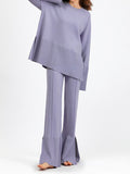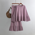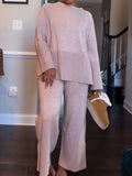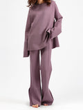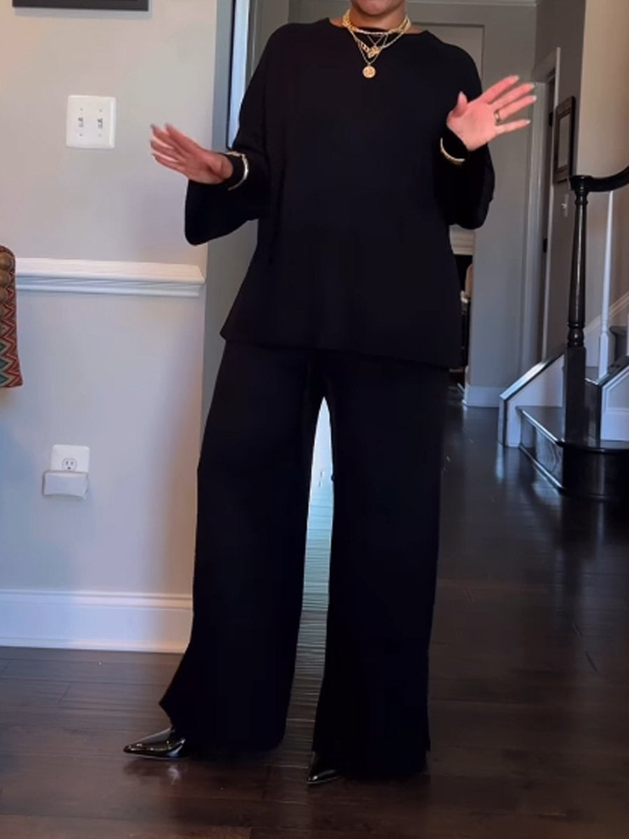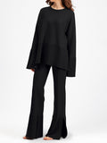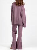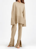 Fashion Trumpet Sleeve Round Neck Slit Loose Knitted Suit
