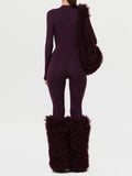 Our runway inspired and fashion-forward plush leg warmers are constructed with an opulent Mongolian faux fur to elevate your aesthetic, and designed with built-in socks to keep you warm and cozy through cold temperatures. Style with our matching handbag to complete the look.