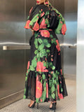 Floral-print Round Neck Maxi Dress