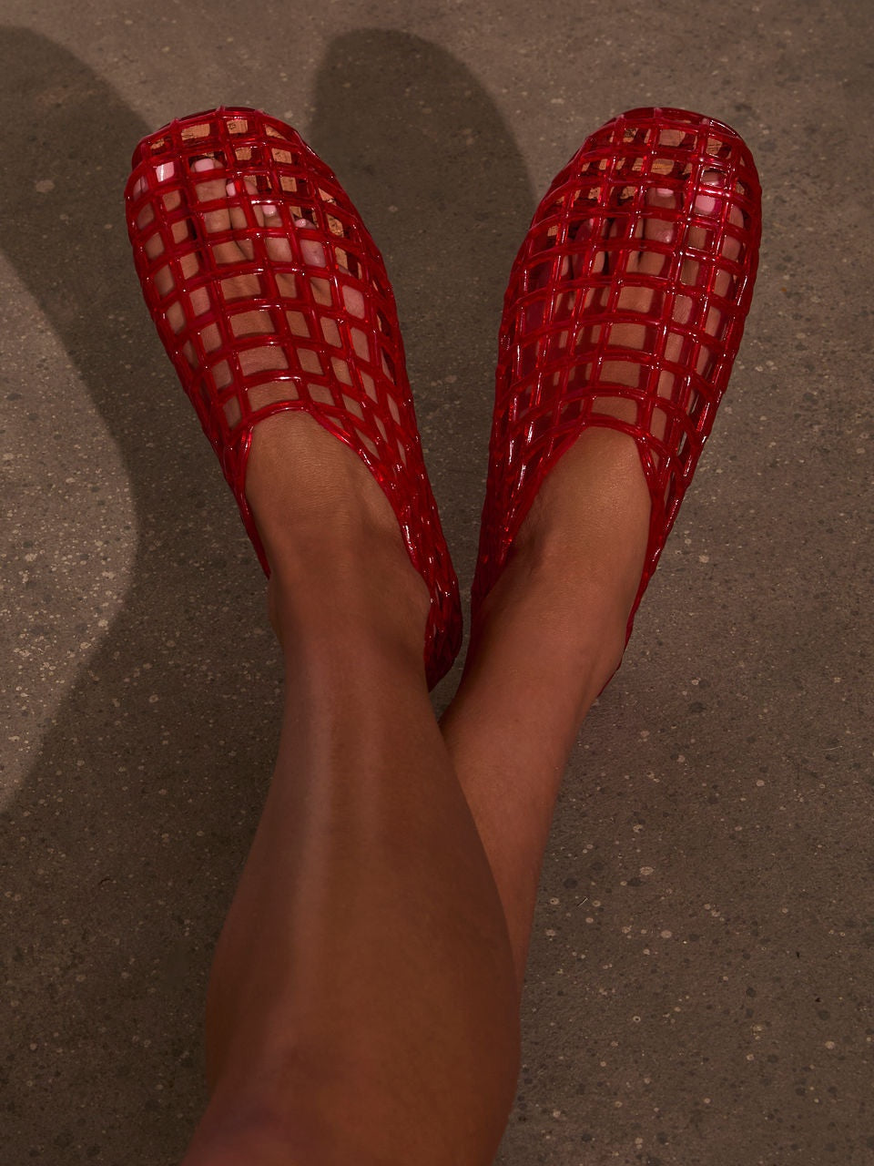 Open basketweave jelly ballet flats