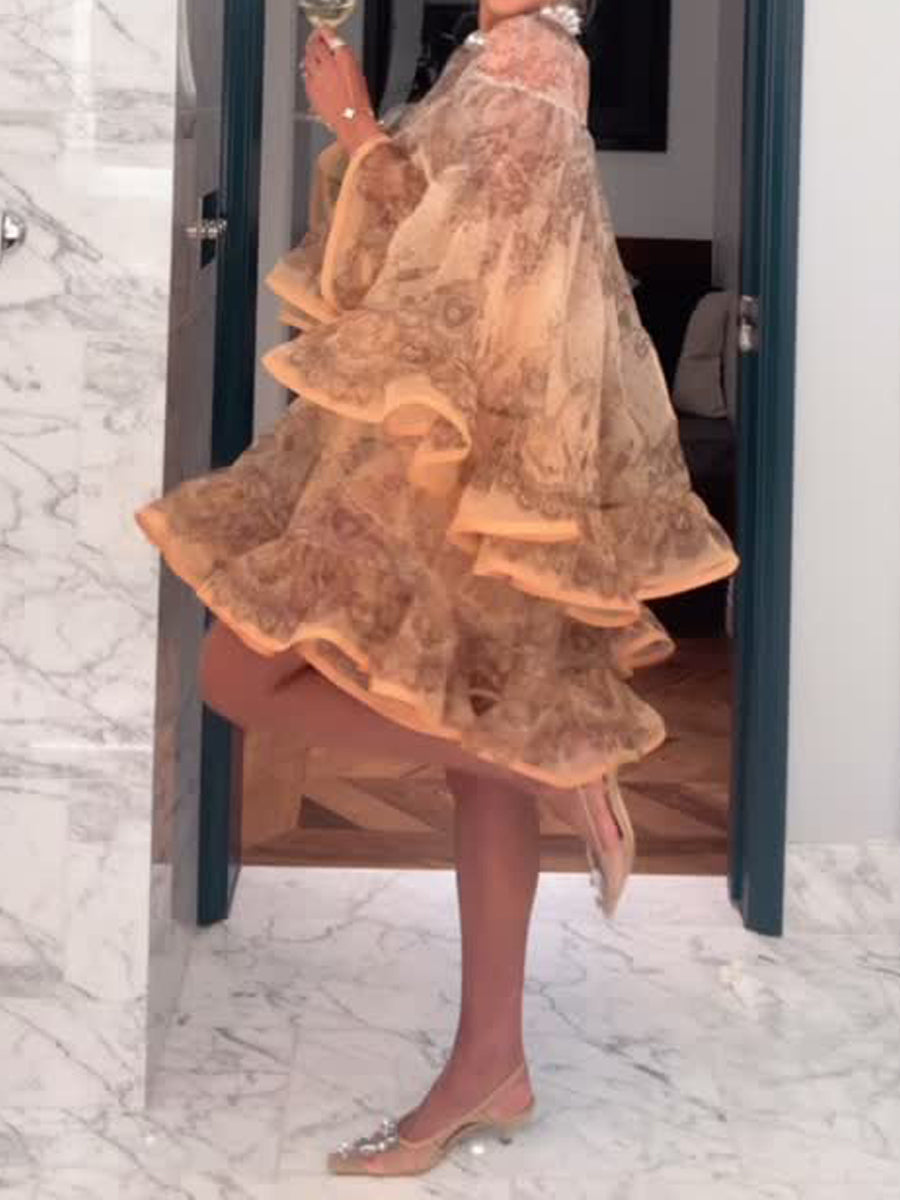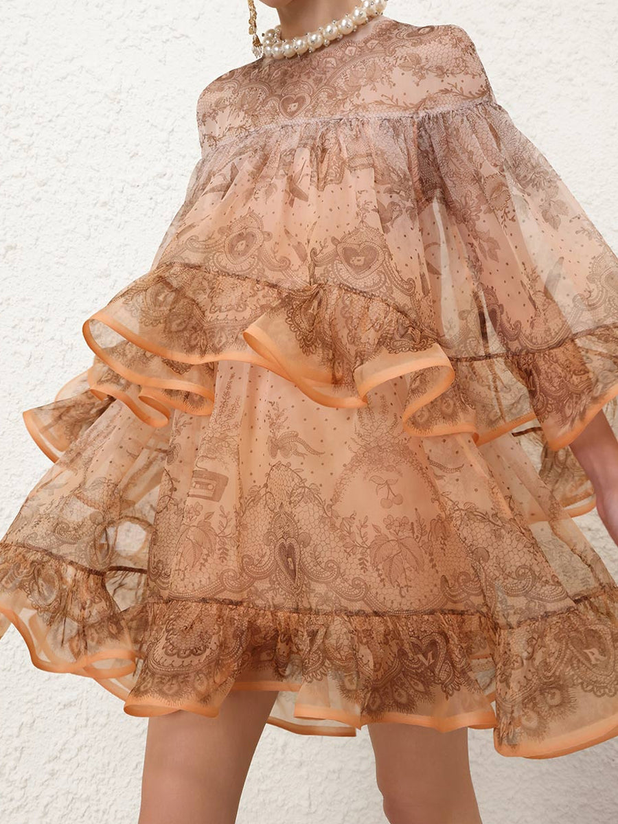 Gradient Placement Print Flouced Mini Dress