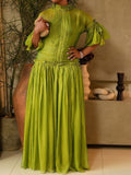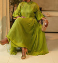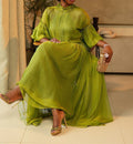 Green Tulle Long Sleeve Maxi Dress
