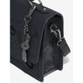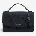 Prep for spooky season with this Nightmare Before Christmas crossbody bag! Featuring velvet, embroidered, and embossed details of Halloween Town residents and icons from the film, the front flap of this bag includes a metal bat charm. With a removable multi-charm keychain, a top handle, and a removable crossbody strap, this purse is perfect for fans of the Disney film.
