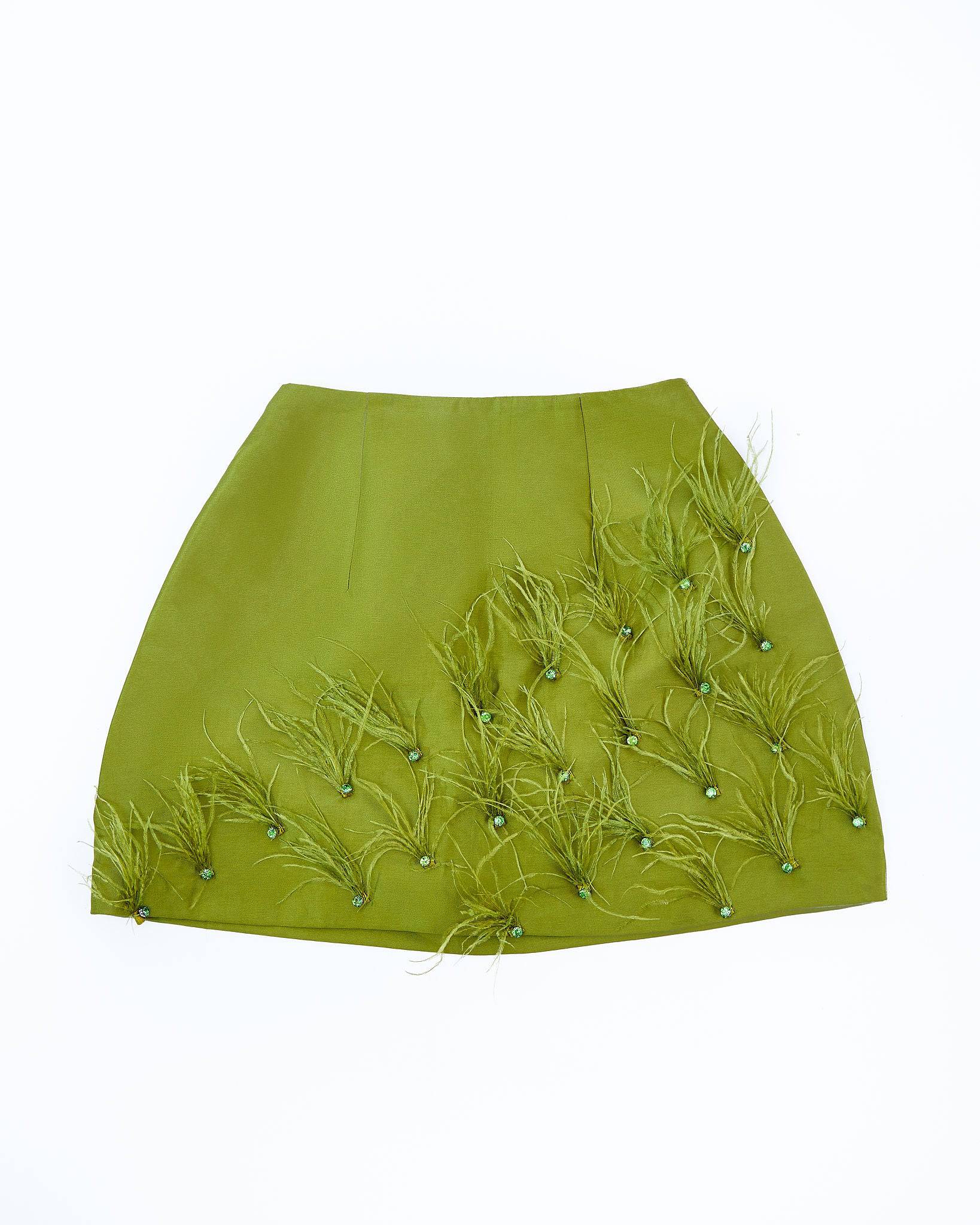 Made in our signature silk satin and Hand-embellished with feathers and crystals, it adds a touch of glamour to your special occasion attire. The bandless high-waisted detail ensures a flattering fit to enhance your shape and cinch you in the right places.